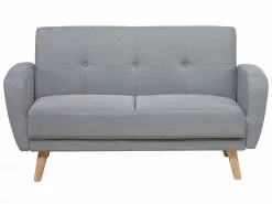 Moderni sohva retrolla vivahteella, joka säästää tilaa. Se myös tarvittaessa avautuu sängyksi ja on runsaasti pehmustettu parhaan mukavuuden saavuttamiseksi. Sohva on verhoiltu kestävällä polyesterikankaalla, ja koristeltu napeilla. Kumipuiset jalat tarjoavat sohvalle vakautta yhdessä puisen rungon kanssa. Tyyliltään sohvan on helppoa asettua osaksi esimerkiksi skandinaaviseen sisustukseen.