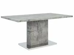 Piristä ruokailutilasi ilmettä tällä ylellisellä ruokapöydällä. Suorakulmainen, jalustalle asetettu pöytälevy tarjoaa tarpeeksi ruokailutilaa jopa kuudelle hengelle. Klassisen muotoilunsa ansiosta tuolit on helppo liu’uttaa pöytälevyn alle, kun ne eivät ole käytössä. Pöytä on valmistettu betonikuvioidusta, viilutetusta MDF-levystä ja jalusta metallista, jotka antavat sille urbaanin ja vankan ulkonäön.