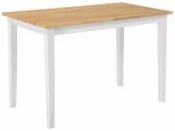 Tämä ruokapöytä on täydellinen keskipiste ruokailutilaan tai keittiöön. Se antaa sisustuksellesi viehättävän, maalaistalomaisen ilmeen, tehden siitä kirkkaamman ja suloisen. Pöytälevy on valmistettu luonnollisen sävyisestä kumipuusta, kun taas valkoiseksi maalatut jalat korostavat lämmintä, vaaleaa puun sävyä kauniisti. Nauti ihastuttavasta ulkonäöstä ja vankasta, laadukkaasta rakenteesta yhdessä perheen tai ystävien kanssa ruokaillen.