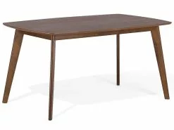 Tyylikäs, retrotyylin inspiroima ruokapöytä tuo todellista vuosisadan puolivälin tuntua ruokailutilaan tai keittiöön. Leveä, suorakulmainen pöytälevy tarjoaa mukavan ruokailukokemuksen jopa neljälle hengelle. Puuviilutetun MDF-levyn ja kumipuujalkojen tumma sävy antaa pöydälle luonnollisen ilmeen, joka sopii loistavasti perinteisiin sisustuksiin. Kapeat jalat antavat ripauksen minimalistista tyyliä.