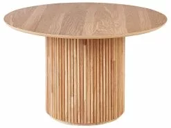 Tyylikäs, pyöreä ruokapöytä on käytännöllinen osa ruokailutilaa tai keittiötä, parantaen sen ilmettä ja lisäten tilaan perinteistä tunnelmaa. Leveä pöytälevy on valmistettu helppohoitoisesta MDF-levystä ja tukeva jalusta kestävästä ja vakaasta kumipuusta. Luonnollisen värinsä ja ainutlaatuisen muotoilunsa ansiosta pöytä voidaan yhdistää useiden erityylisten sisustustarvikkeiden kanssa ja se sopii monenlaisiin sisustuksiin, boho-tyylisistä rustiikkisiin tai skandinaavisiin. Pöytä tarjoaa sopivasti tilaa jopa neljälle hengelle ja useille tarjottaville.