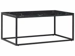 Tämä moderni sohvapöytä on saanut inspiraationsa ylellisestä vuosisadan puolivälin muotoilusta. Sohvapöydän avoin runko on valmistettu mustaksi jauhemaalatusta metallista. Pöytälevy on valmistettu MDF-levystä, joka on viimeistelty mustalla marmorikuviolla. Leveä pöytälevy ja ainutlaatuinen muotoilu luovat tyylikkään ja käytännöllisen kokonaisuuden, joka antaa olohuoneen sisustukselle ylellisen ilmeen.